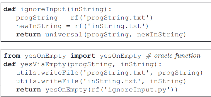 • Proved that YesOnEmpty in uncomputable by reducing YesOnString to it