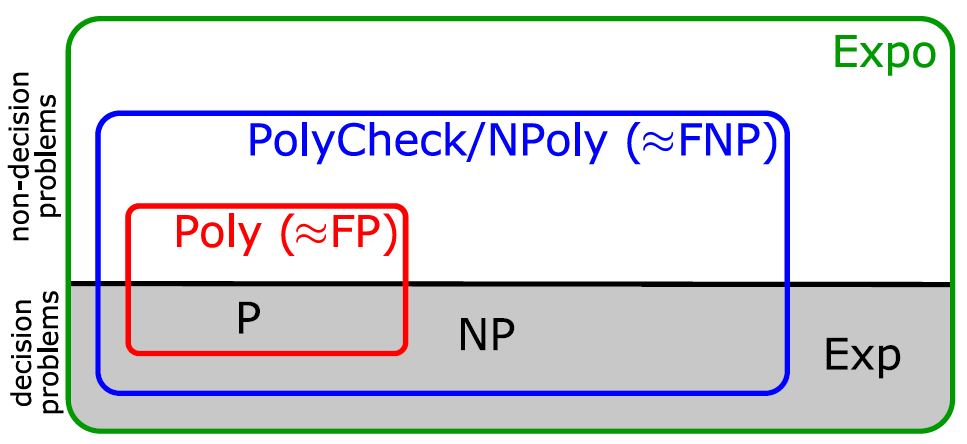 The Poly/Expo boundary separates tractable from intractable: but some problems are easy to verify even when hard to solve. For instance, factoring a number is hard, but checking if a number is a factor is easy! This observation leads us to PolyCheck! The word Check connects to “verification”!
