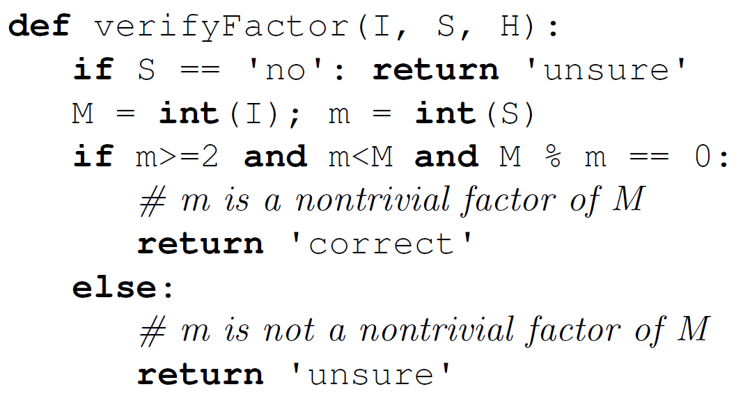 correct or unsure (never incorrect!)unsure when the “quick check” is not clearunsure not incorrect?The unsure output reflects fundamental asymmetry: verifiers can confirm correctness but cannot definitively reject; they are “helpful” but not perfect. This asymmetry mirrors nondeterministic computation where positive solutions are found but negative instances only yield no!
