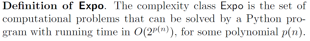 • Computational problem \(L\) is in Expo if it is computable and solvable in exponential time