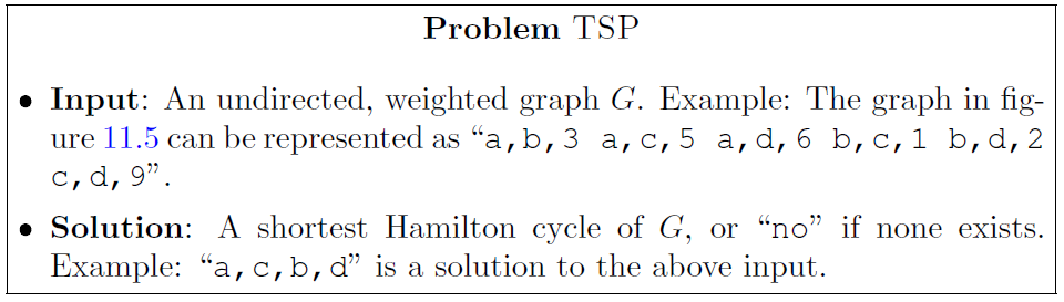 • TSP: find shortest Hamilton cycle visiting all vertices