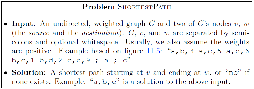 • ShortestPath: find shortest path in graph (polynomial)